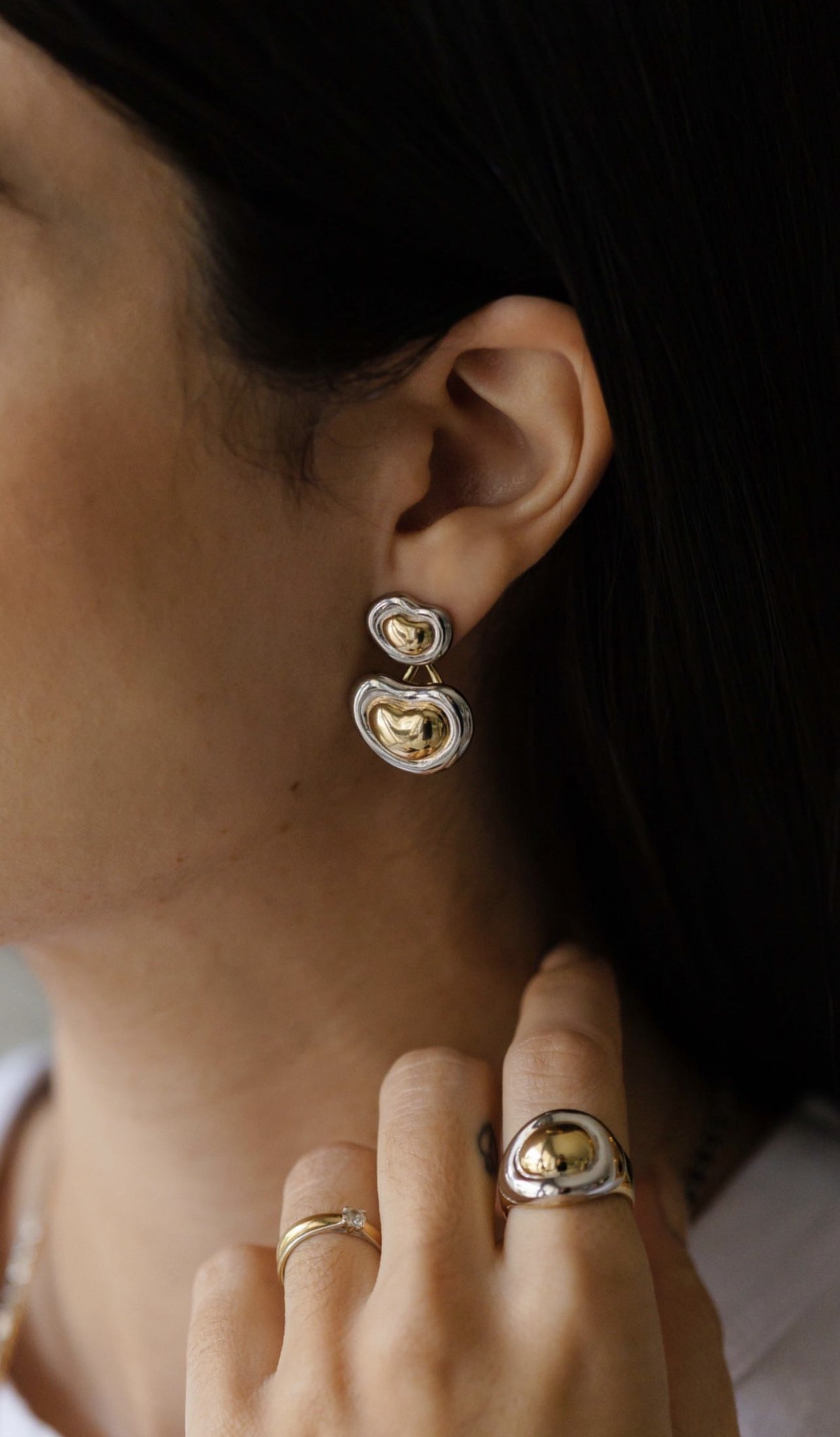Brinco modelo ear jacket, na foto mostramos como ele fica nas duas maneiras diferentes.