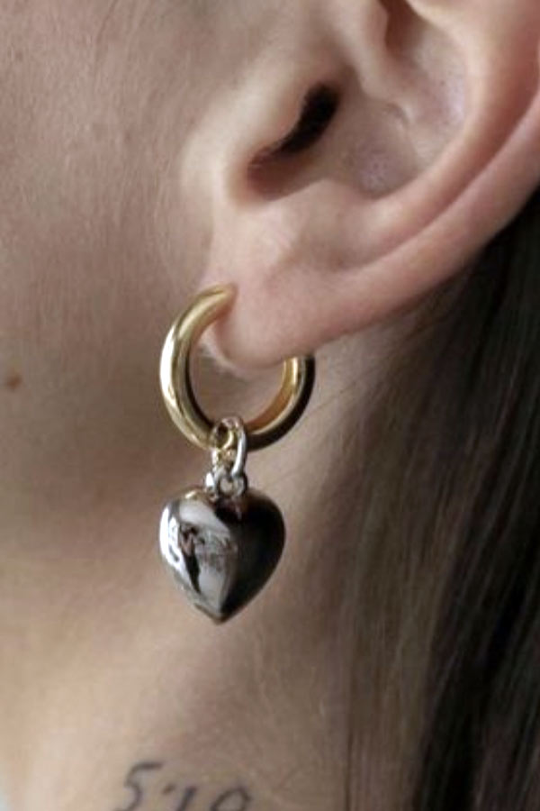 Brinco argola banhado a ouro 18k com pingente de coração removivel banhado a rodio branco