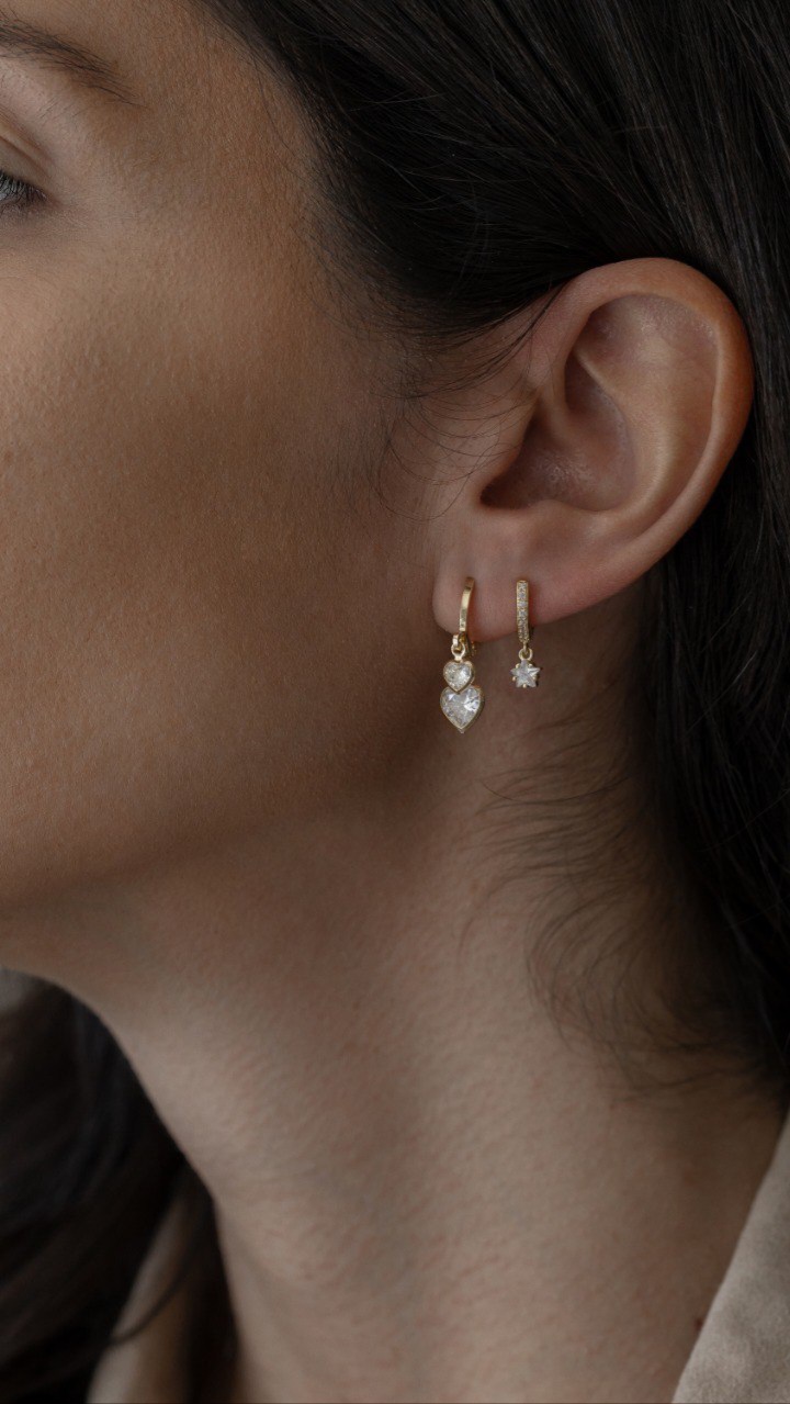 Brinco argolinha com corações de zircônias