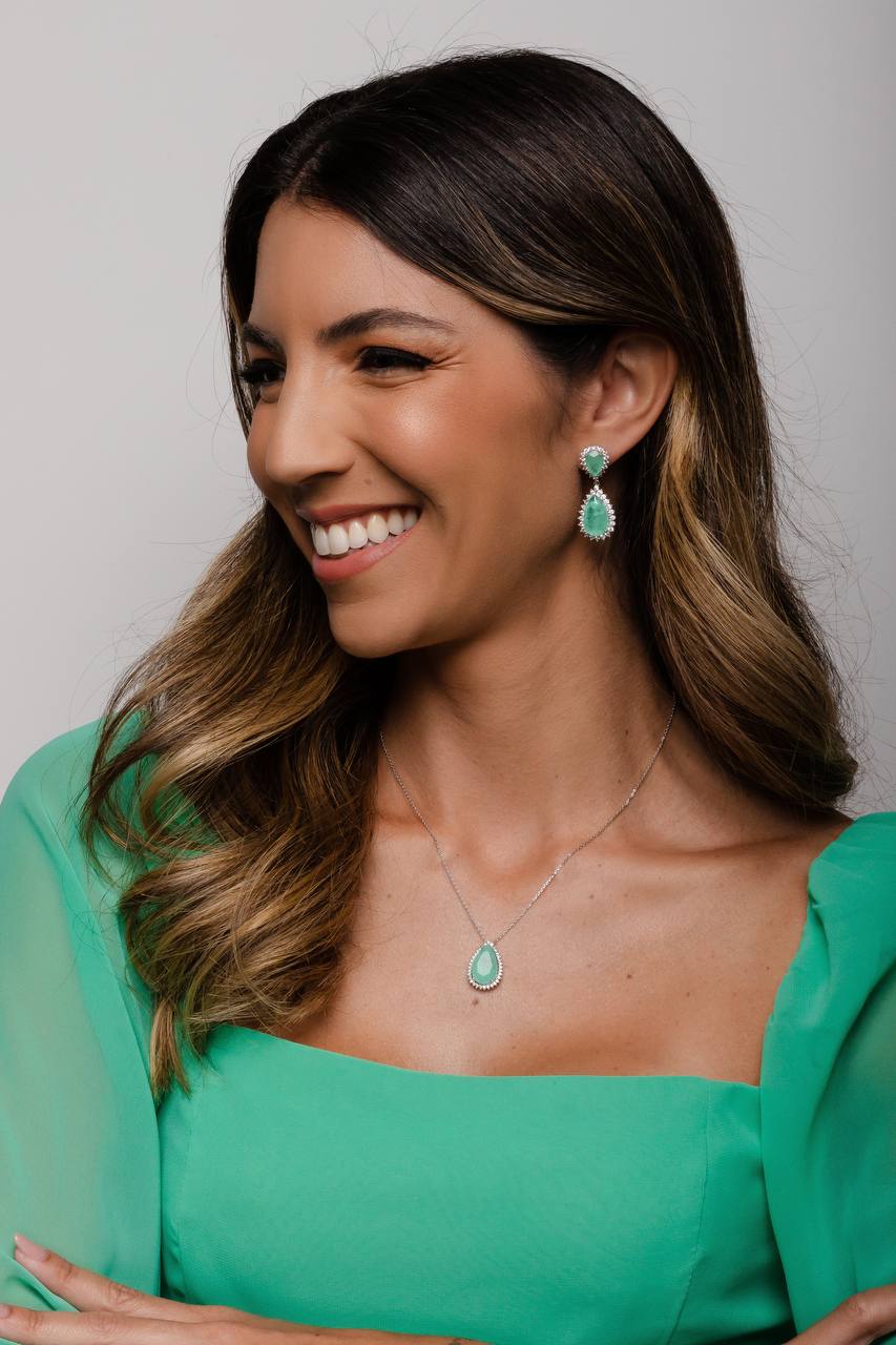 Brinco com pedras turmalina fusion em formato de gotas cravejados por micro zircônias