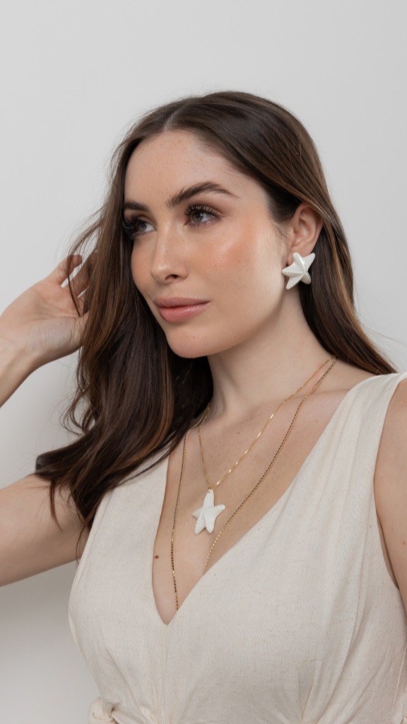 Brinco de resina branca em forma de estrela do mar, com pino banhado a ouro.