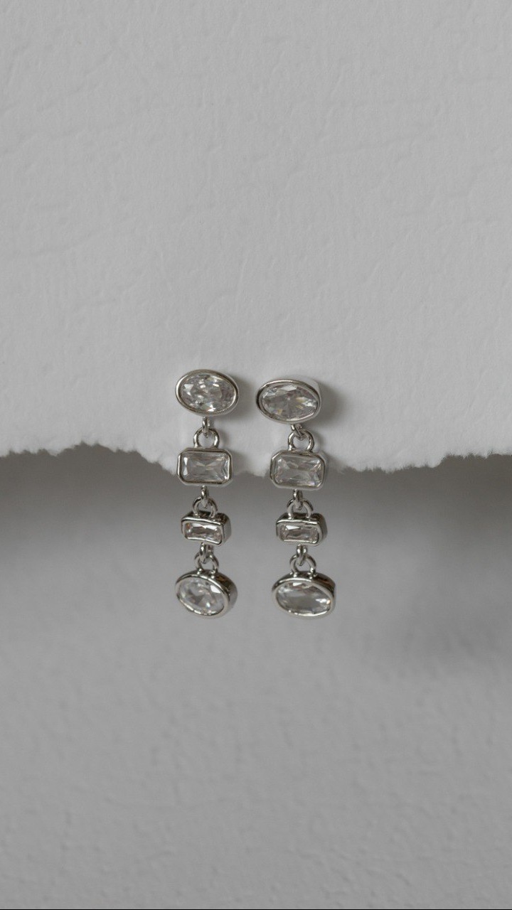 Brinco com zircônias geométricas e cravação inglesa.