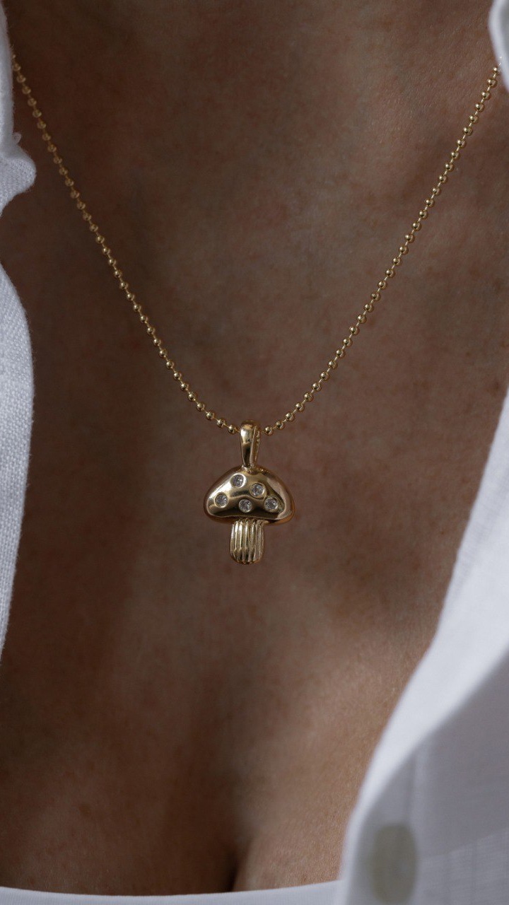 Colar cogumelo com pequenas zircônias.