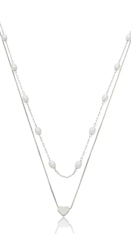 Colar duplo com aproximadamente 40 cm de comprimento + 11 cm de extensor.