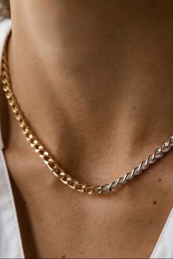 Colar de elos grumet metade no banho de ouro 18k e outra metade em rodio branco.