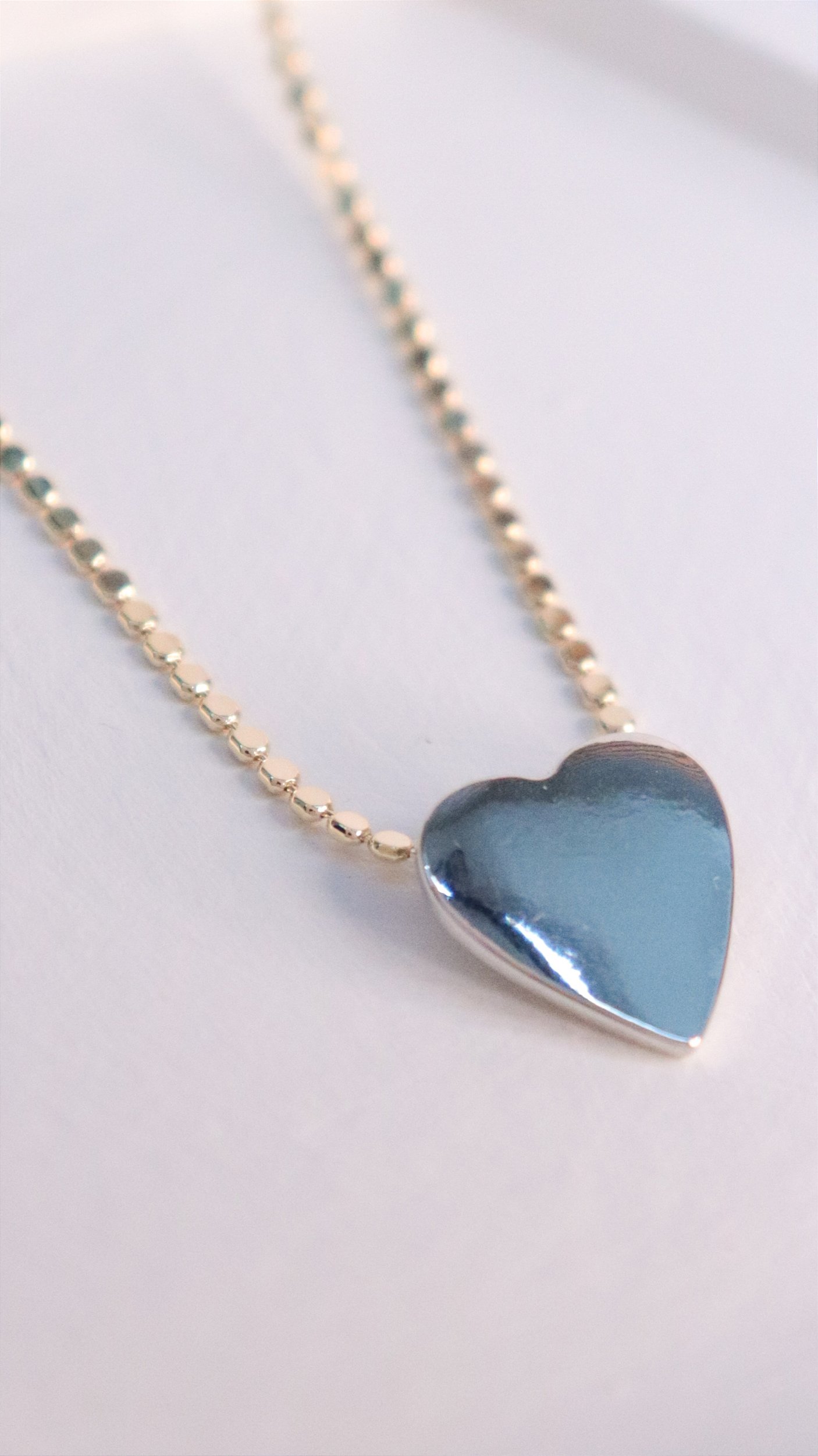 Colar corrente de bolinhas/esferas achatadas com aproximadamente 40cm de comprimento+ 5cm de extensor e pingente com 1,5cm.