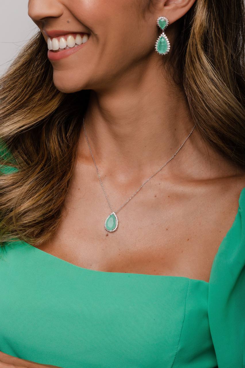 Brinco com pedras turmalina fusion em formato de gotas cravejados por micro zircônias