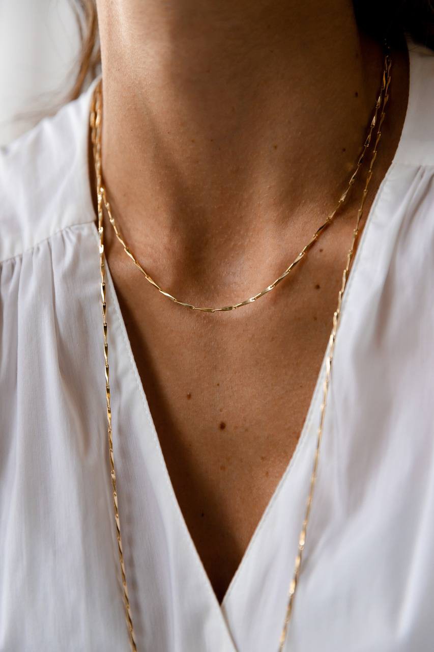 Colar mini chapas com trabalho estilo torcido, tamanho P, não acompanha o colar tamanho longo.