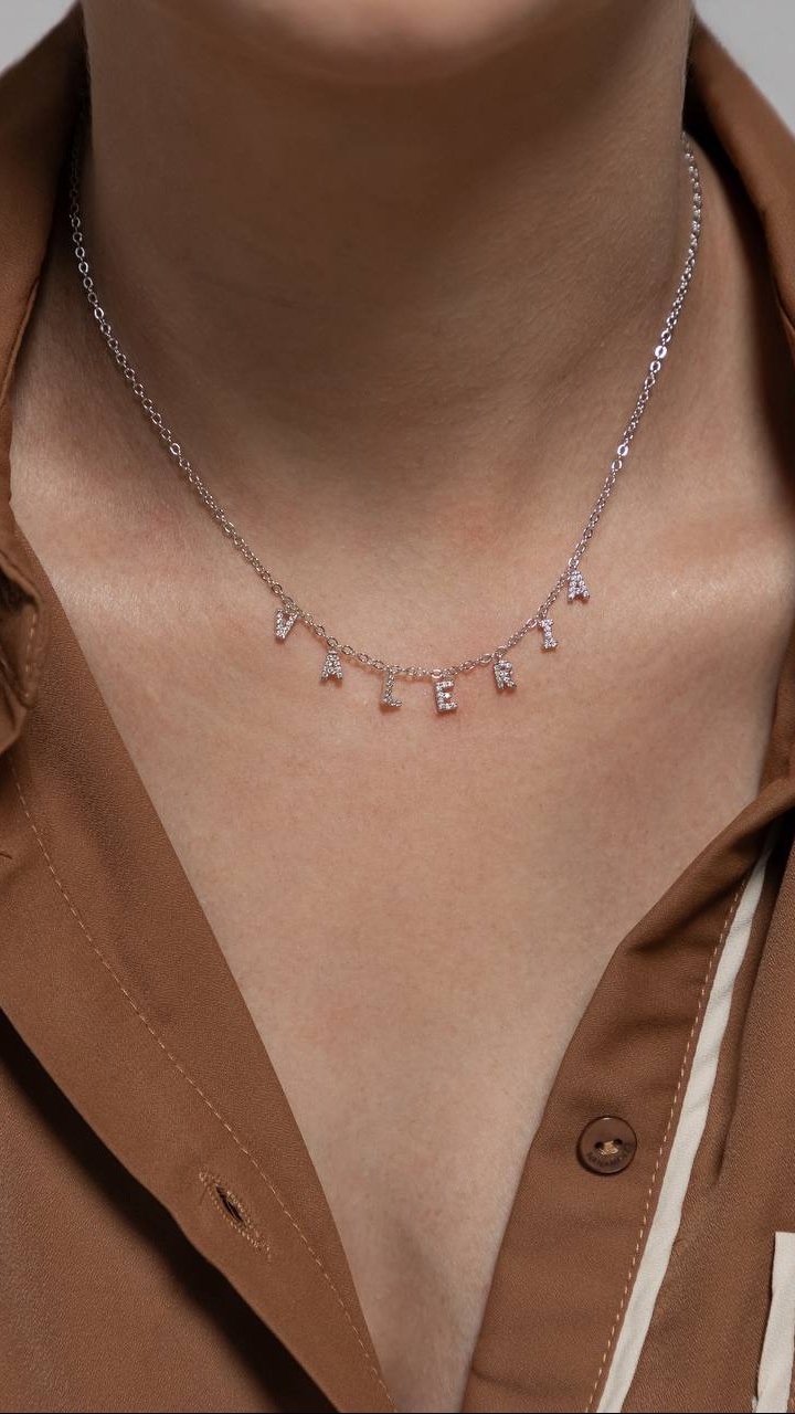 Pingente de letras com 5mm cada.