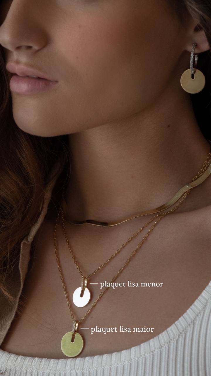 Colar CURTO com placa lisa, corrente cartier fina e elo cravejado, NÃO ACOMPANHA O COLAR DE TAMANHO LONGO.