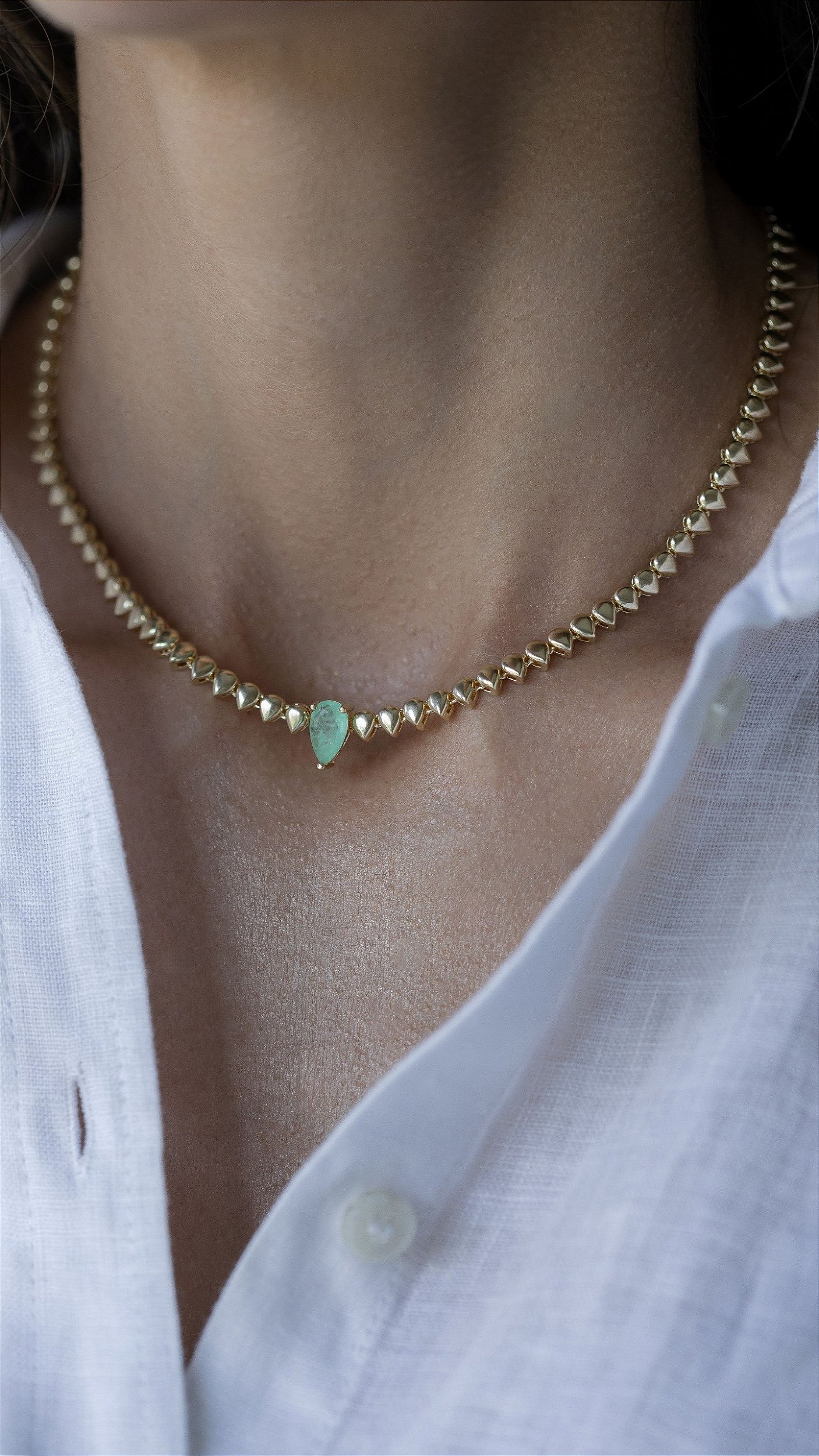Colar riviera dourada gotas com pedra Turmalina Paraíba