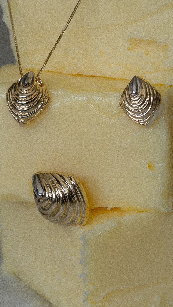 Peça banhada a ouro 18k, com detalhe em ródio branco + selante