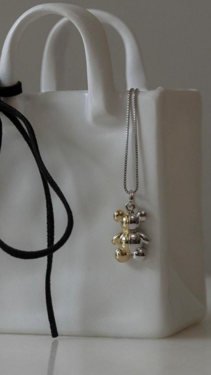 Colar veneziana em ródio branco mais pingente de ursinho com mix de banhos