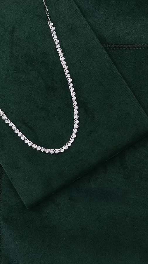 Meia riviera em formato de coração, com 45cm e cravejada de zircônias