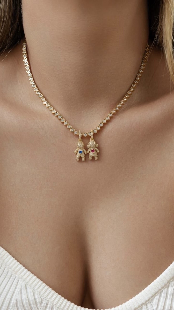 Pingente filho banhado a ouro 18k, cravejado de zirconias com corcação central de zirconia colorida.